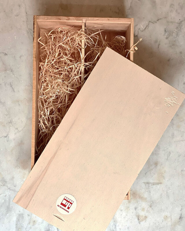 Ideal as a gift, this wooden wine case for 2 bottles with a sliding lid.