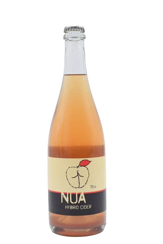 Hybrid Cider by Nua is a Portugese cider made from 96% apples and 4% red fruits. The apples are grown by a cooperative of small farmers who protect their trees from extinction.